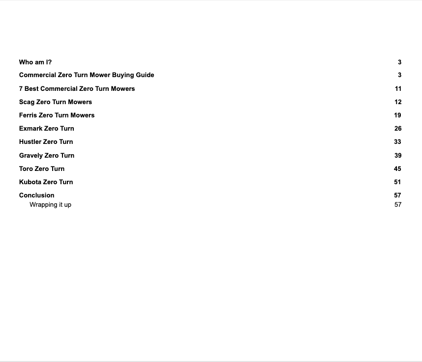 The commercial mower handbook now comes with a Google sheet with comparisons of all the top mowers. You no longer need to click back and forth to compare mowers. I've done all of the work for you!