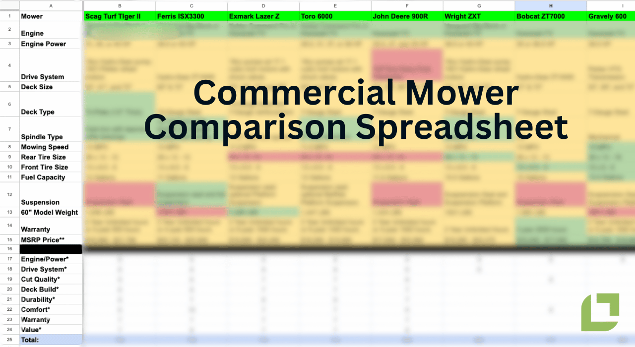 Now including the ultimate commercial mower comparison spreadsheet!